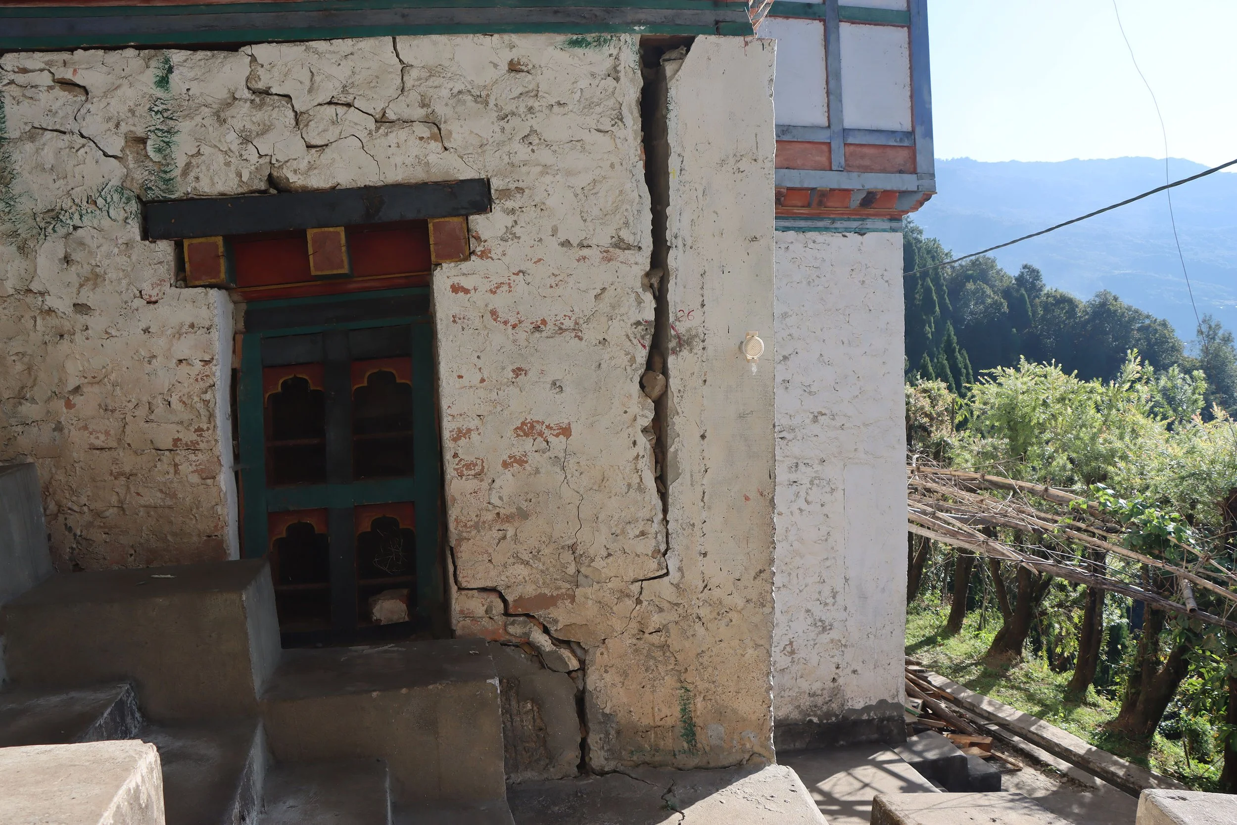 幸而只有主要尼寺受到影響。位於緩坡地的佛學院,其土地檢測報告為穩定。另外,我們目前尚未在閉關中心的建物發現任何裂縫,即便它們也處於陡峭地。